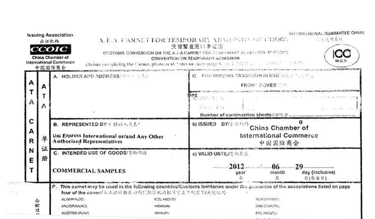 >ATA單證冊的格式一份ATA單證冊一般由8頁ATA單證組成:>>一頁綠色封面單證、一頁黃色出口單證、一頁白色進口單證、一頁白色復出口單證、兩頁藍色過境單證、一頁黃色復進口單證、一頁綠色封底。
