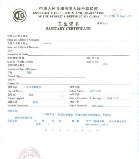 7.<中國檢驗檢疫衛生證書> >>點擊查看